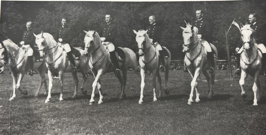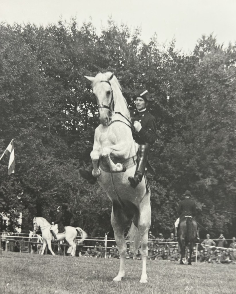 After the Lipizzaners wowed the audience with their caprioles, levades and courbettes — the ‘airs above the ground’ movements where the horse balances on his hind legs and leaps into the air — the lights dimmed across Madison Square Garden and the fourteen stallions pulled abreast as Col. Podhajsky alone rode forward on Pluto, a magnificent white stallion who years earlier “had cowered under a hail of bombs in Vienna under siege; had accepted reduced rations when food was scarce; had put up with rattling across war-torn Austria in an unadorned boxcar and stood without panicking during the horror of an unsheltered air raid outside a train station.”1